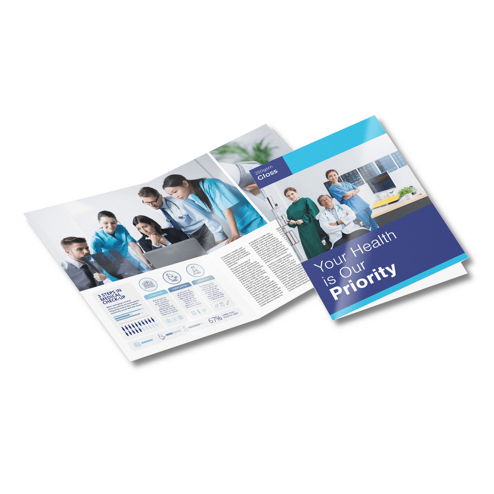Type: 630x297 Printed 2 side on 150gsm gloss art folded to A4